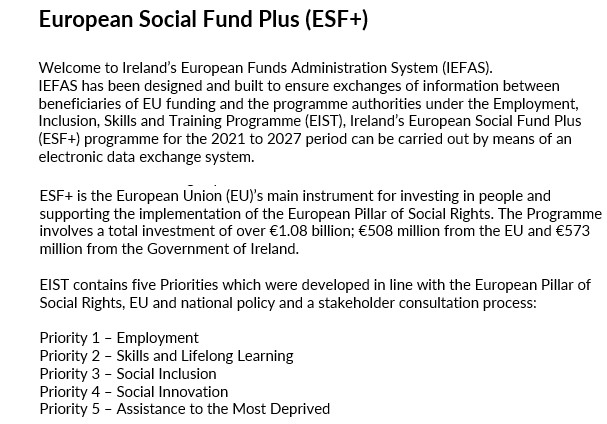 The Employment, Inclusion, Skills and Training programme is co-funded by the Government of Ireland and the European Union